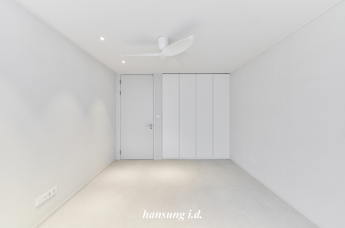 서재는 화이트 톤 마감과 맞춤 붙박이장, 실링팬을 적용해 집중하기 좋은 환경을 조성했다. 이번 정자동 미켈란쉐르빌 62평 리모델링은 모던함과 고급스러움을 조화롭게 담아내면서, 부부의 라이프스타일을 중심으로 설계된 기능성 중심 프로젝트라 할 수 있다. 화려하지만 과하지 않고, 단정하지만 단조롭지 않은 공간이 완성되었다.