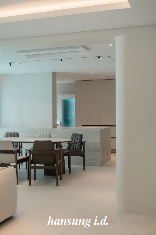 분당 정자동 파크뷰 54평 아파트가 한성아이디 본점의 설계와 시공을 통해 빛이 은은하게 스며드는 화이트 모던 인테리어로 새롭게 단장되었다. 화이트와 그레이 톤의 절제된 조합, 균형 잡힌 가구 배치, 그리고 세 식구의 일상을 고려한 실용적 구성까지— 이번 프로젝트는 ‘여백의 미’와 ‘생활의 편안함’을 동시에 실현한 공간이다. 고객이 중요하게 생각한 수납, 가족 간 연결감, 부드러운 동선은 각 공간에 자연스럽게 스며들어, 안정적인 일상과 정돈된 편안함을 제공한다. 공용부에는 900×900 포세린 타일을 적용해 시원한 공간감을 살리고, 침실은 도배, 벽·천장은 도장 마감으로 구역별 분위기를 다르게 연출했다.