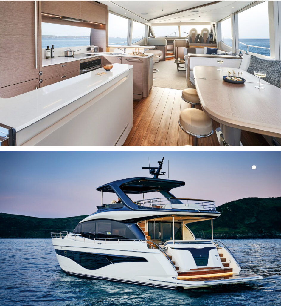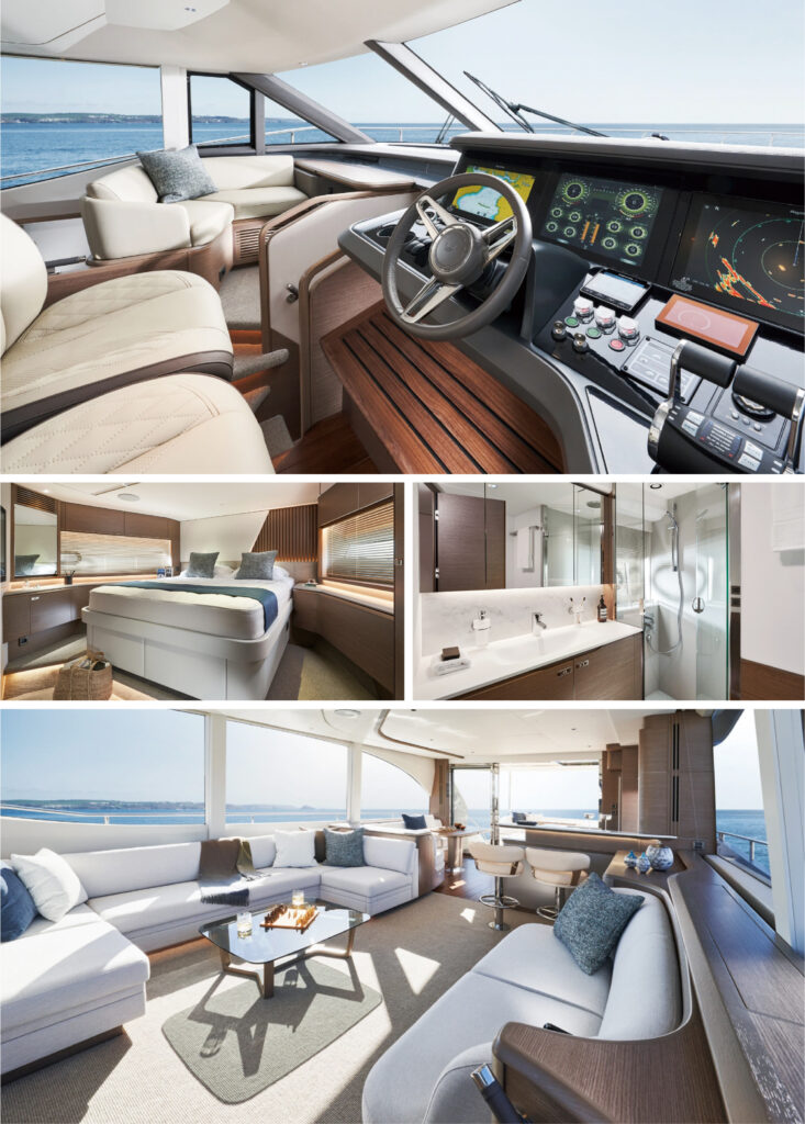 Y72는 실내 동선과 마감이 핵심 강점으로 꼽는다. 주방은 개인 용도와 상업 용도 모두에 적합하며, 오너 스위트의 디테일은 대형 요트에서나 볼 수 있는 수준의 편안함을 선사한다.